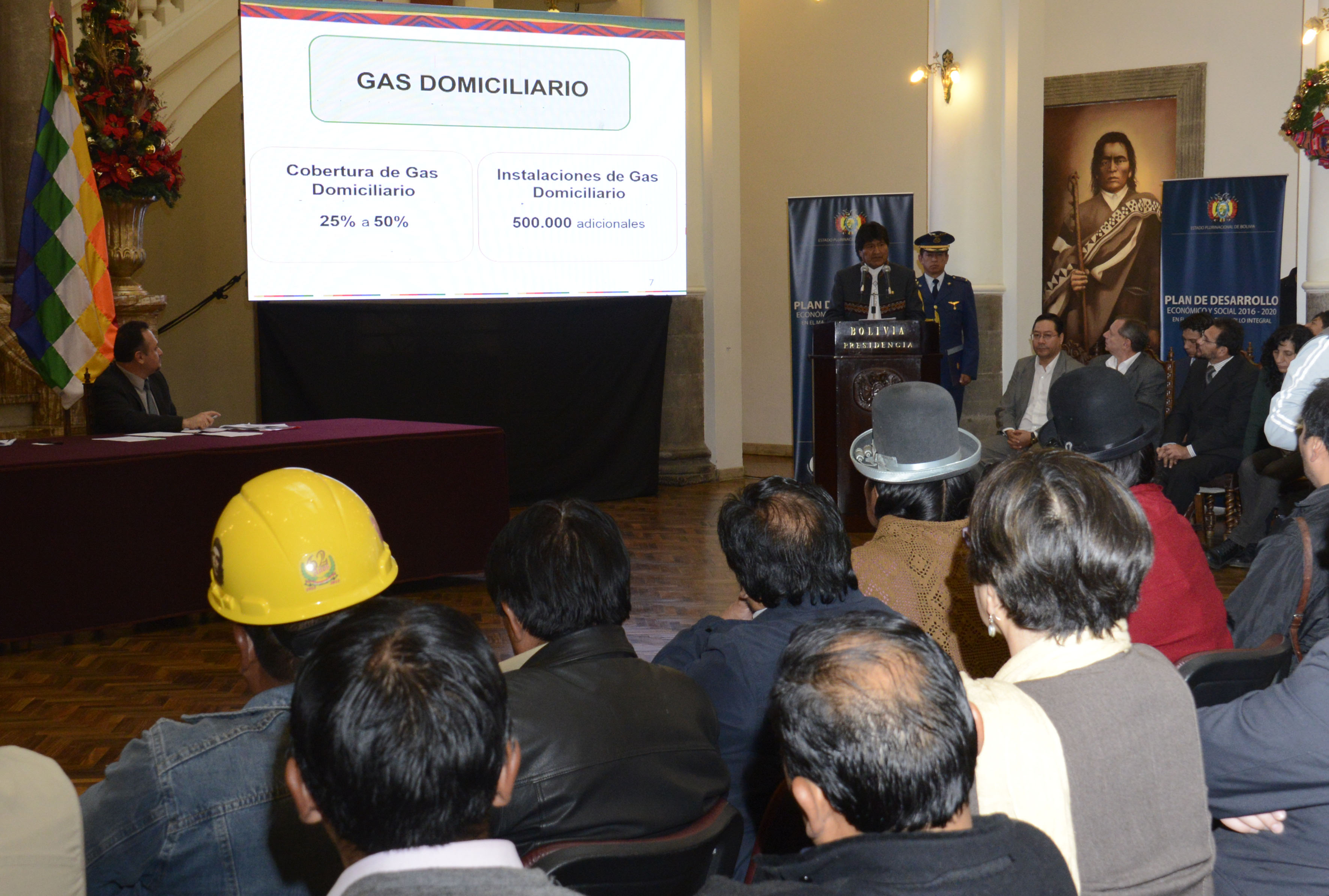 El presidente Evo Morales anunció este martes, en el marco de la presentación del Plan de Desarrollo Económico y Social 2016-2020, que el Gobierno invertirá 12.681 millones de dólares en el sector de hidrocarburos en los próximos cinco años y también estimó que la producción de gas natural aumentará de 60 MMmcd a un mínimo de 73 MMmcd en el mismo período.