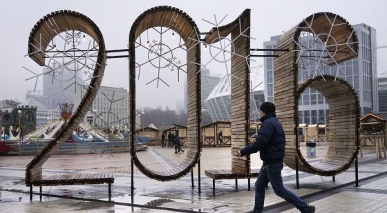 Un hombre camina frente a una decoración de año nuevo en Kiev. / Efrem Lukatsky (AP)