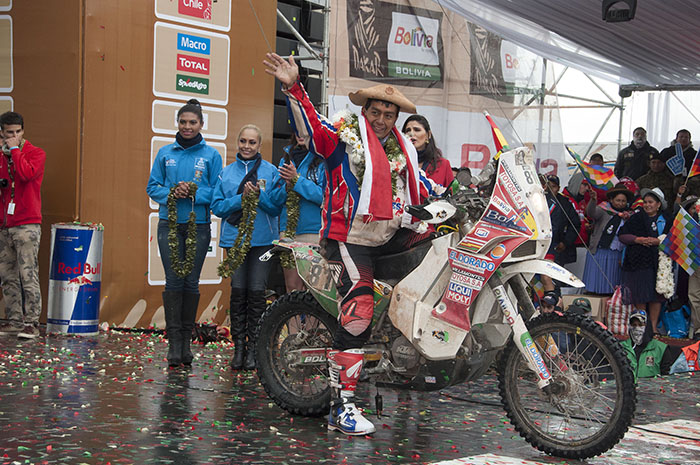 «Estoy muy emocionado. Viva Bolivia, orgullosamente boliviano», remarcó en la rampa después de marcar un tiempo de 4 horas, 39 minutos y 48 segundos, tiempo que lo ubicó en el puesto 52 de la etapa.