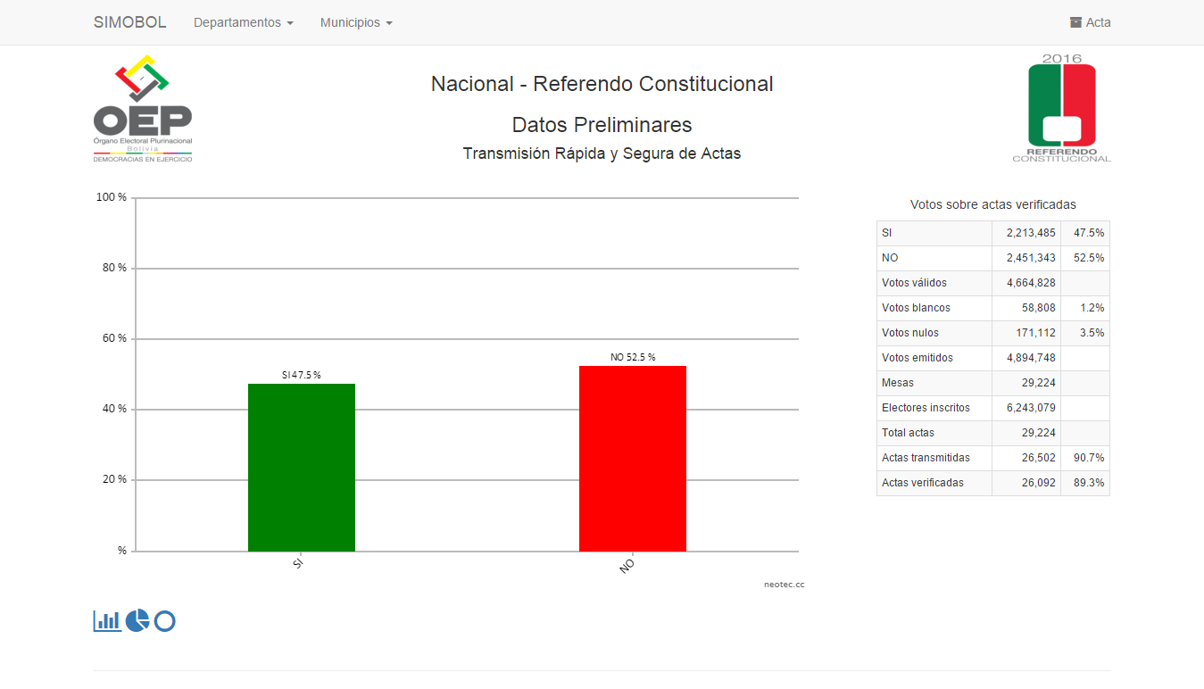 | Actas transmitidas | 26,523 | 90.8% |