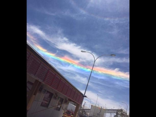 “Esto se diferencia del arcoíris porque este no es difracción, sino que refracción (cambio de las ondas al pasar de un material a otro, como cuando se ve un lápiz “doblado” a través de un vaso con agua). Y porque el arcoíris se observa de espaldas hacia el Sol, es decir hacia el oeste”, explicó Branco Tepes, meteorólogo de la Dirección Meteorológica, a Soyantofagasta.cl.