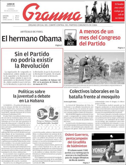 Fidel Castro también fustigó el «bloqueo despiadado que ha durado ya casi 60 años». El artículo figura entre los conocidos como «reflexiones de Fidel», está fechado a las 10.27 de la noche del 27 de marzo y ha sido divulgado esta mañana en los medios oficiales de la isla y en él desgrana aspectos de las palabras de Obama el pasado martes desde el Gran Teatro de La Habana.