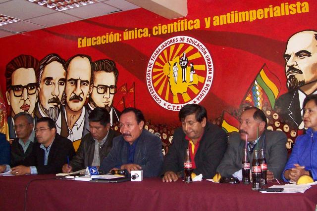 Los ejecutivos de la Confederación de Maestros Urbanos de Bolivia. Foto: Oxígeno.bo