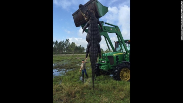 Este enorme cocodrilo fue localizado recientemente por cazadores en Outwest Farms en Okeechobee, Florida.