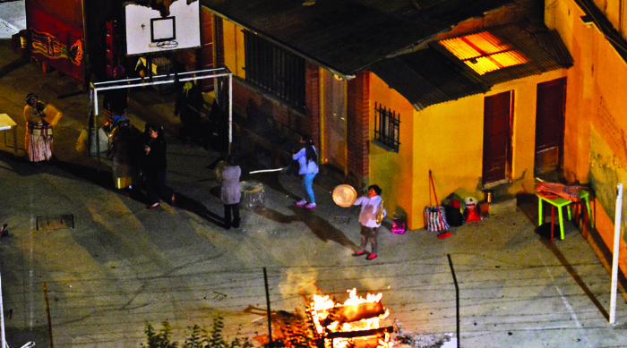 El fuego en el patio del penal de Miraflores, en rechazo a Gabriela Zapata. FOTO FREDDY BARRAGÁN/PÁGINA SIETE.