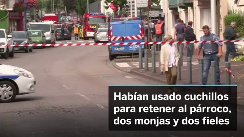 Los atacantes entraron en la parroquia de Saint-Etienne-du-Rouvray, cerca de Rouen, a las 9.25, según ha explicado el fiscal de París. En su interior, el padre Jacques Hamel oficiaba una pequeña misa. Los yihadistas, armados con cuchillos, tomaron como rehenes a las seis personas que había en su interior: el párroco, tres religiosas y una pareja de fieles. Una de las religiosas, la hermana Danielle, logró escapar y dar la alerta a las autoridades. Los atacantes obligaron al cura a arrodillarse y filmaron la escena, según relató al canal de televisión BFMTV. El párroco murió por las cuchilladas en la garganta y en el tórax. El otro hombre que estaba retenido también resultó herido en la garganta, aunque su vida no corre peligro.