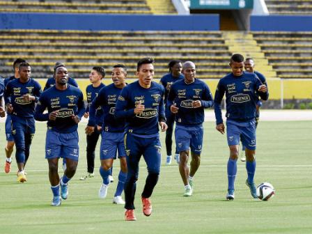 Ref. Fotografia: Los ecuatorianos trabajan duro de cara al partido que tendrán ante los brasileños.