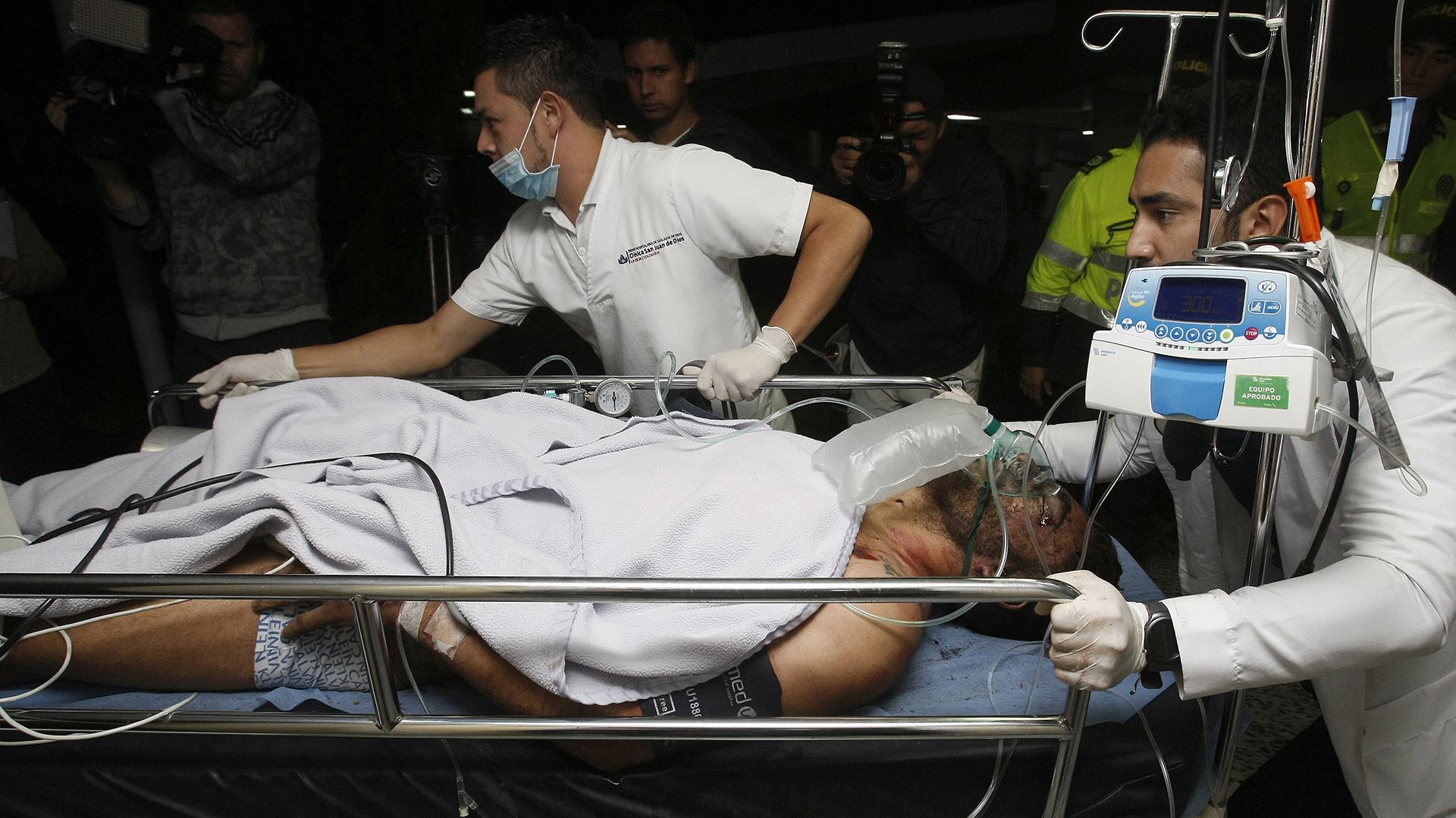 Alan Ruschel al ingresar al hospital de Antioquia donde fue atendido de urgencia. Su estado es grave (Reuters)