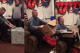 La madre tomó su teléfono y empezó a filmar. Su hijo, Mason Burr, de 11 años, le entregaba a su padre el regalo de Navidad para el que había ahorrado todo el año, usando incluso todo lo que le habían dado a él para su cumpleaños.