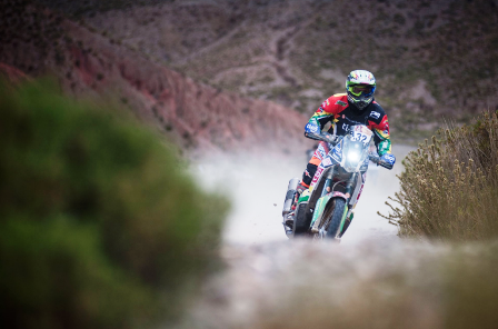 «Etapa dura, al borde de la deshidratación, con caídas, complicado, pero a esto vinimos, ahora tratamos de descansar en lo que se pueda, las asistencias no llegan aun, creo que mejoramos un poco en la gral. #34 Gracias a Dios por cuidarnos, a mi familia, team VMR y la gente que nos alienta en las rutas».
