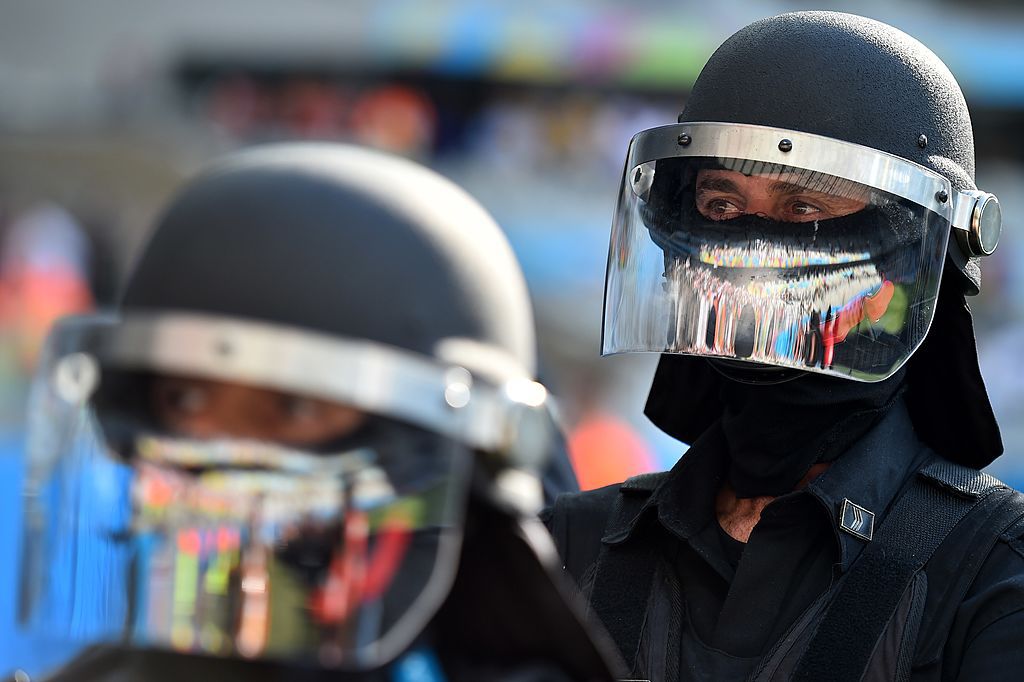 Security personnel move among the crowd after the Group D football match between Costa Rica and England at The Mineirao Stadium in Belo Horizonte on June 24, 2014,during the 2014 FIFA World Cup. AFP PHOTO / BEN STANSALL (Photo credit should read BEN STANSALL/AFP/Getty Images)