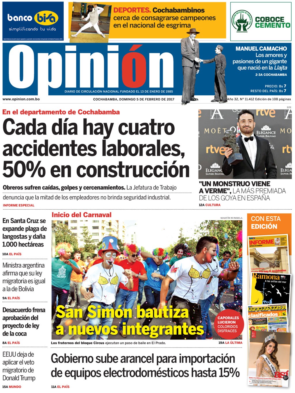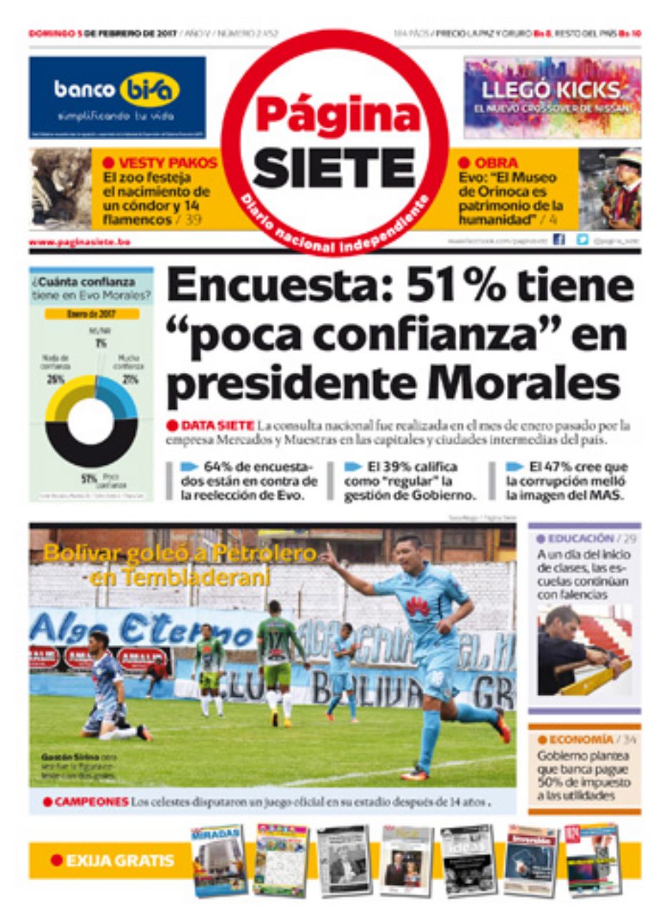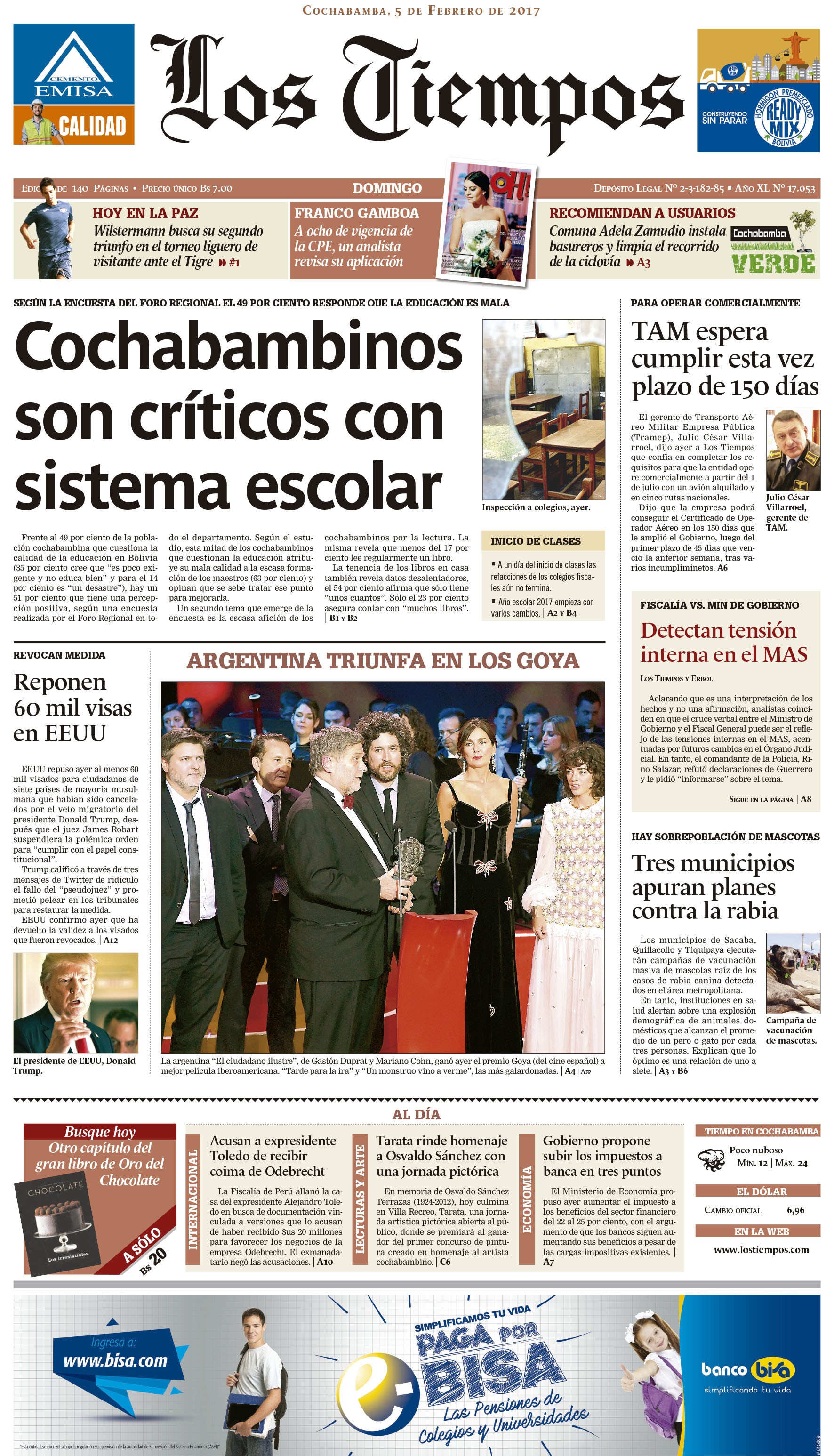 Portadas de periódicos de Bolivia del domingo 5 de febrero de 2017