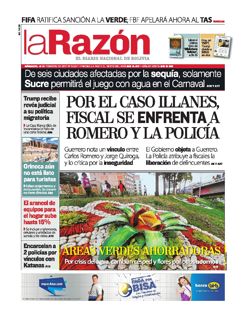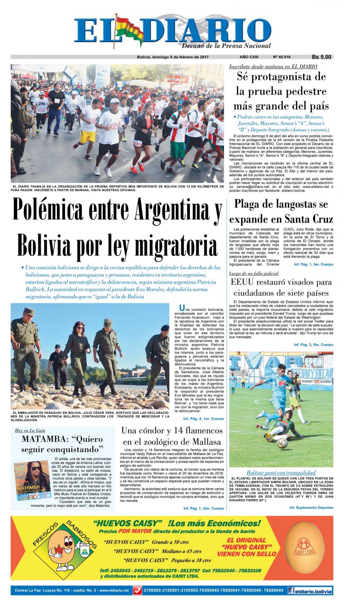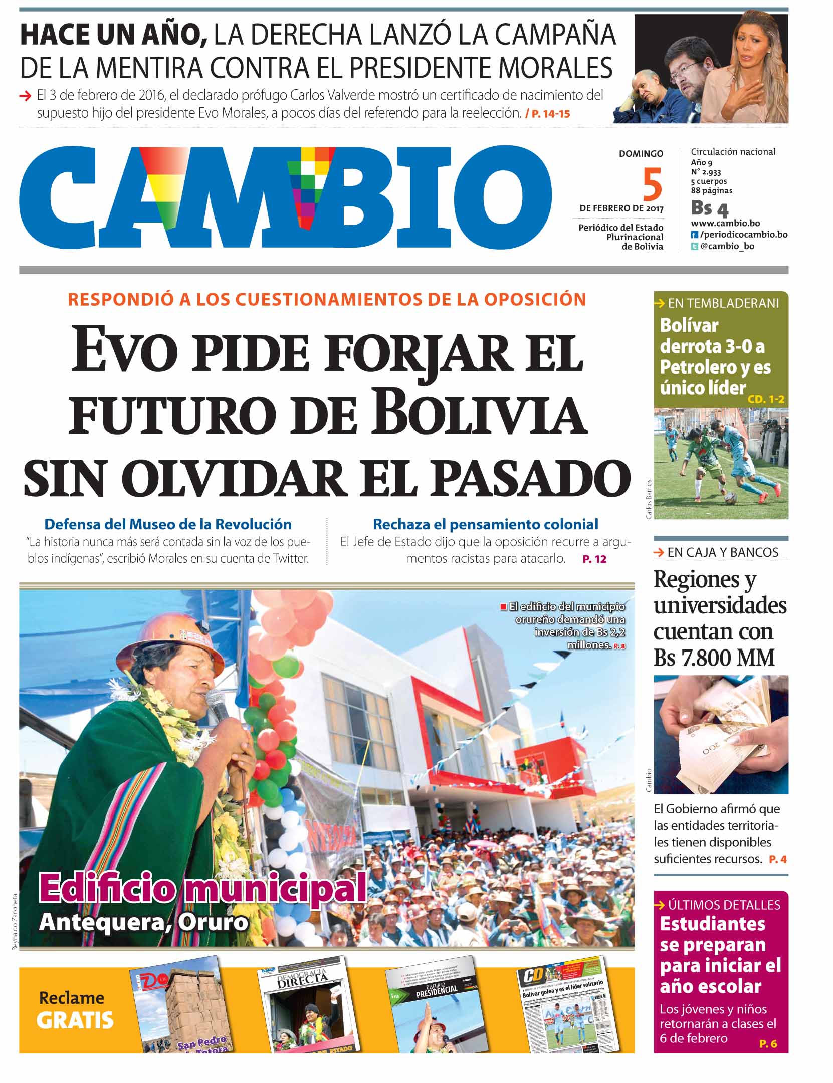Portadas de periódicos de Bolivia del domingo 5 de febrero de 2017