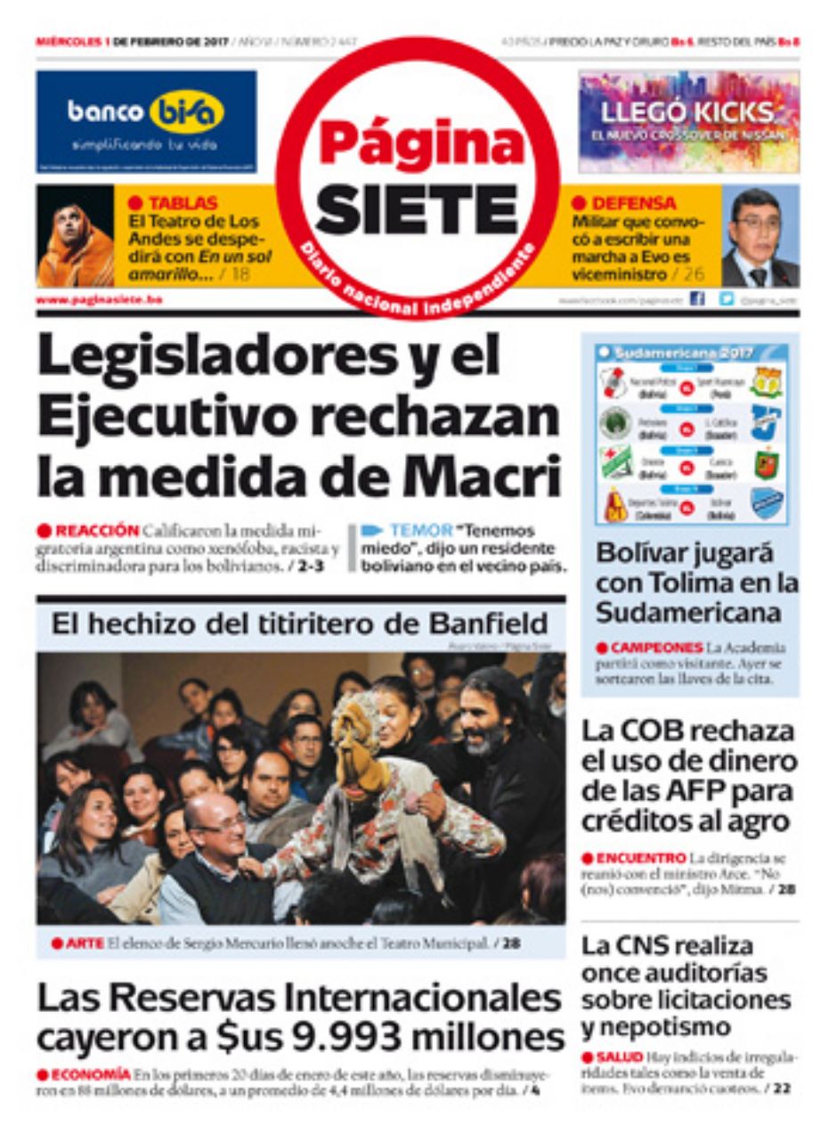 El Deber – Los Tiempos – El Día – La Razón – Cambio – El Diario – Página Siete – Opinión
