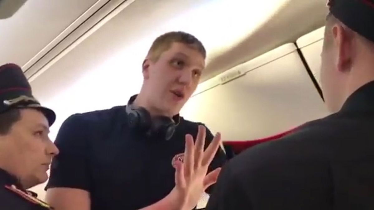 Tras volver a su sitio, Kimérov, de 20 años, no tuvo más remedio que sacar sus largas piernas al pasillo, algo que prohíben las normas de seguridad aérea.
