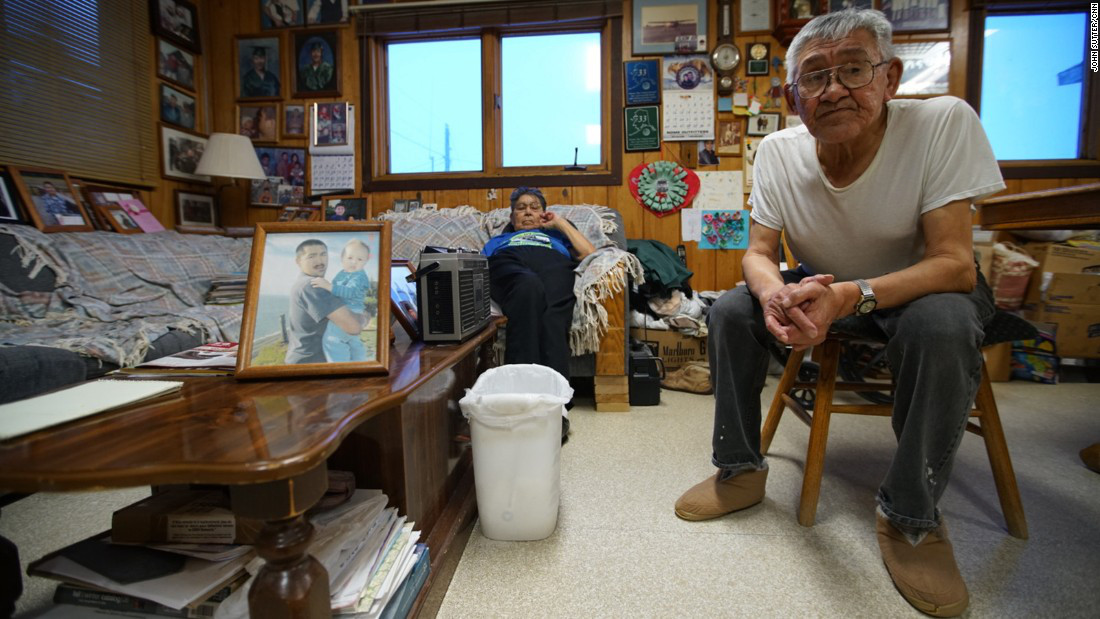 Adentro, una anciana se sienta en una silla de ruedas y un anciano observa el Mar de Chukchi desde la ventana de la cocina. Shelton Kokeok tiene 72 años. Es el padre de Norman. Hoy está concentrado en el océano. Tiene el ceño fruncido. Lo mira con inquietud.