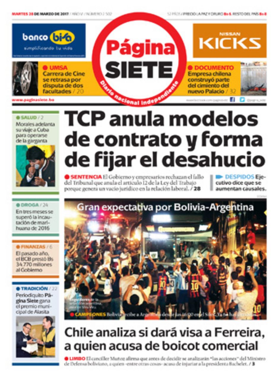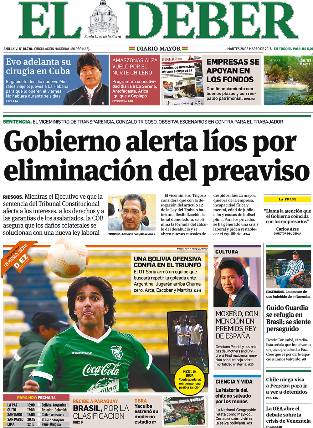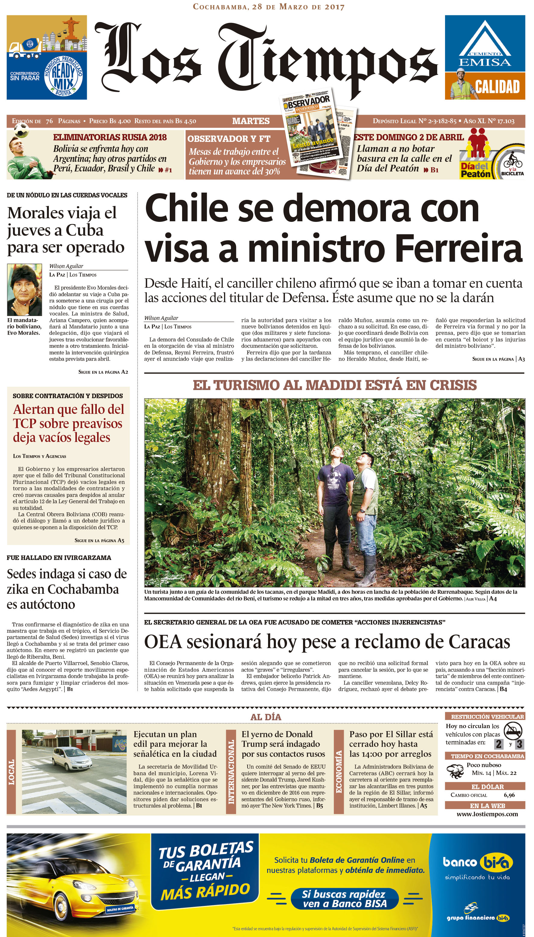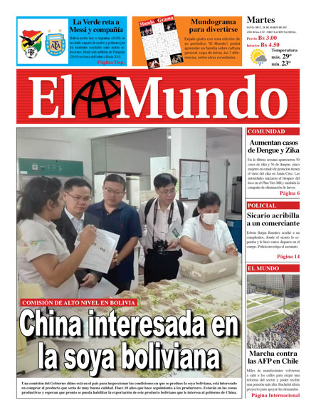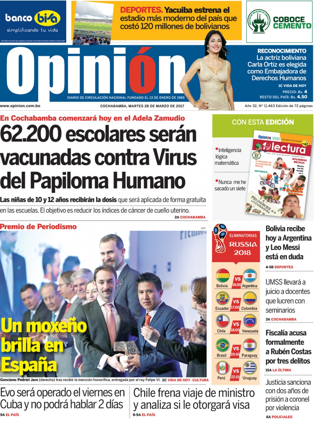 Portadas de periódicos de Bolivia del martes 28 de marzo de 2017