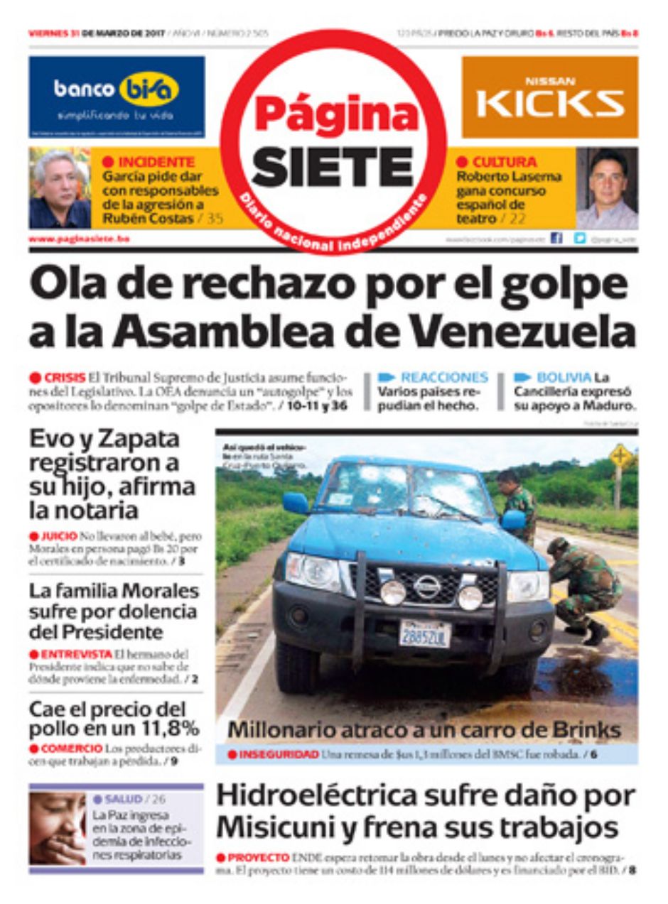 El Deber – Los Tiempos – El Día – La Razón – Cambio – El Diario – Página Siete – Opinión