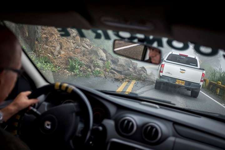 Peligro constante. En el viaje de Medellín a Ituango, cayeron piedras enormes sobre la ruta. (Foto de David Estrada Larrañeta).