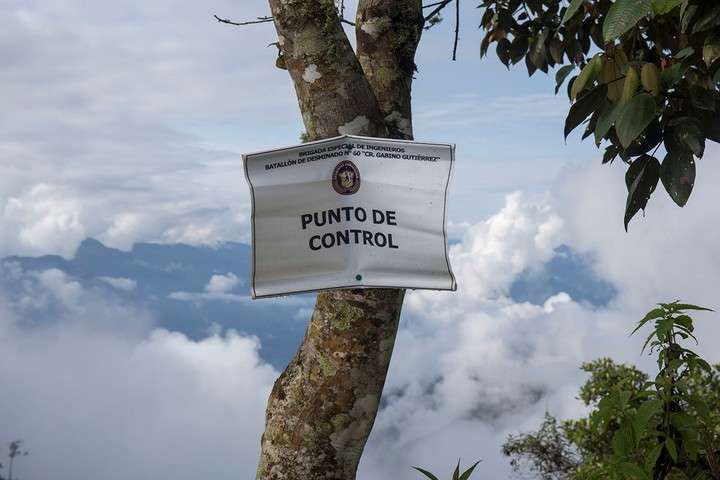 La vereda de Buenavista, que mira cumbres verdes en 360 grados, es una de los lugares de máximo cuidado. Tanta es la precaución que allí se montó el primer campamento de desminado humanitario tras el Acuerdo de Paz.