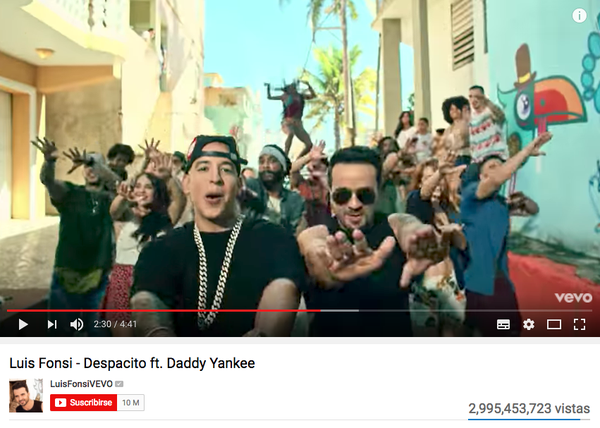 Según informó YouTube por medio de un comunicado, «Despacito» alcanzó hoy 2.993.786.682 reproducciones en esta plataforma digital y se encuentra muy cerca de ser el primer vídeo que supera los 3.000 millones de visitas.