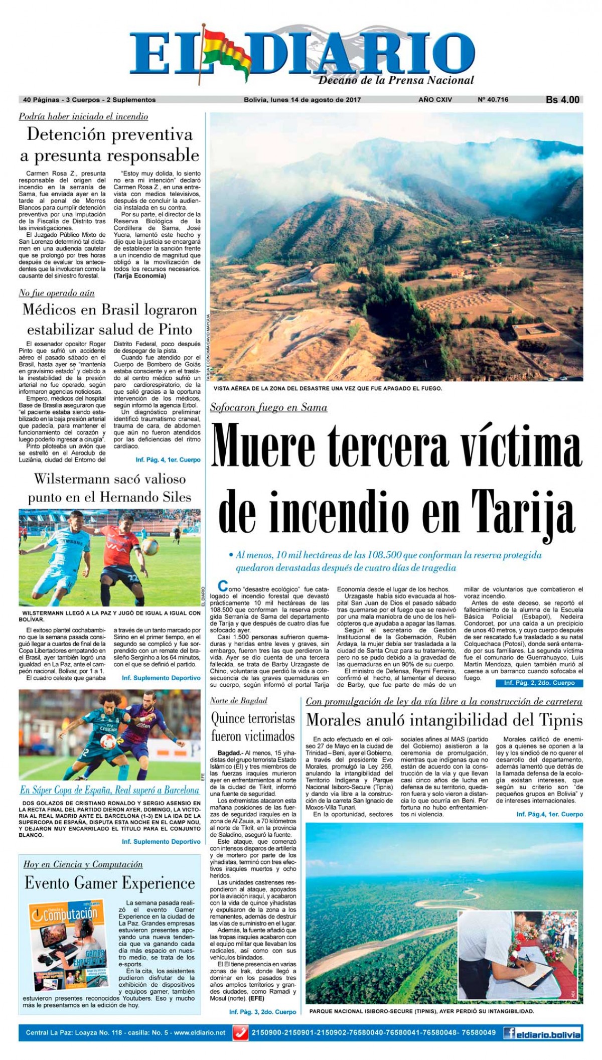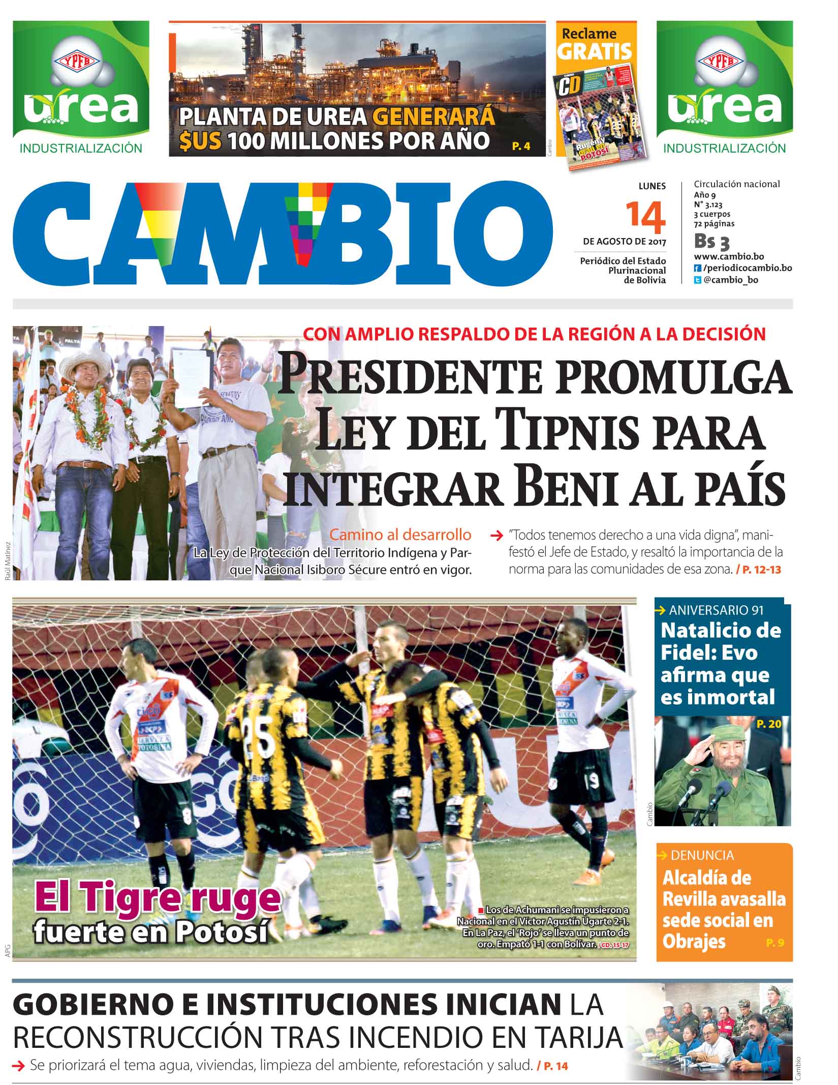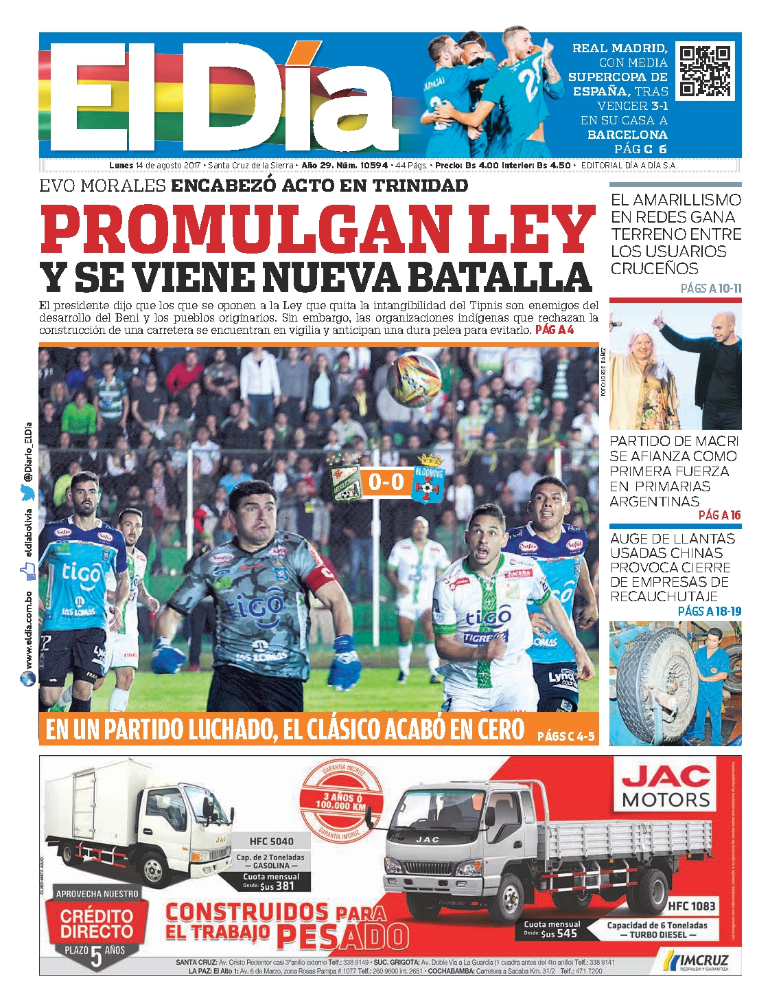 Portadas de periódicos de Bolivia del lunes 14 de agosto de 2017Categorías MonitoreoEtiquetas , Portadas de periódicos 14/08/2017 El Deber – Los Tiempos – El Día – La Razón – Cambio – El Diario – Página Siete – Opinión