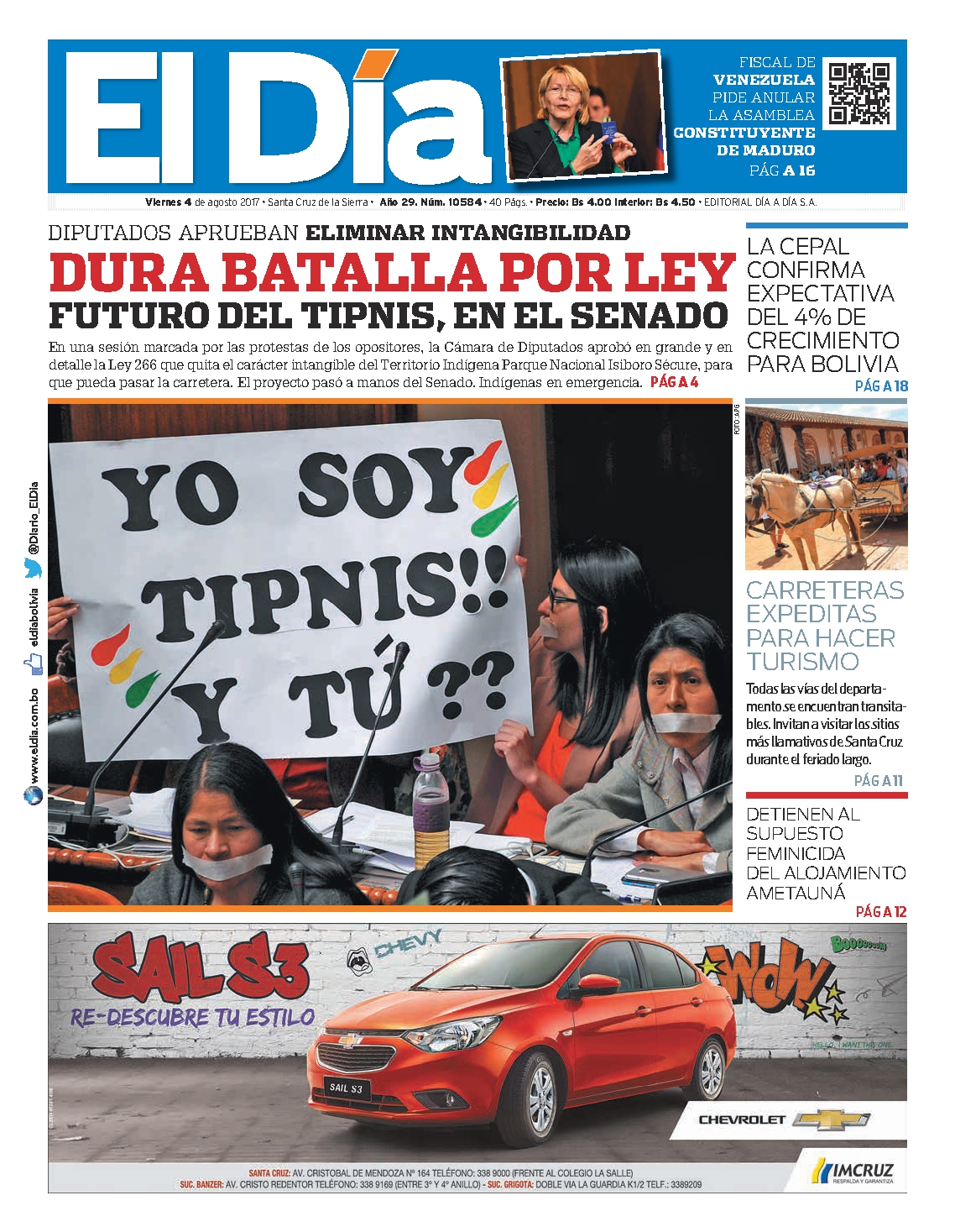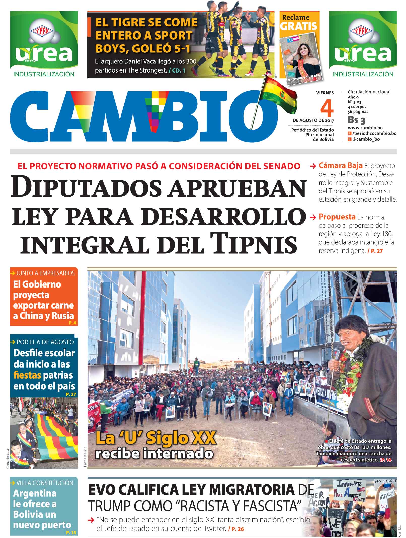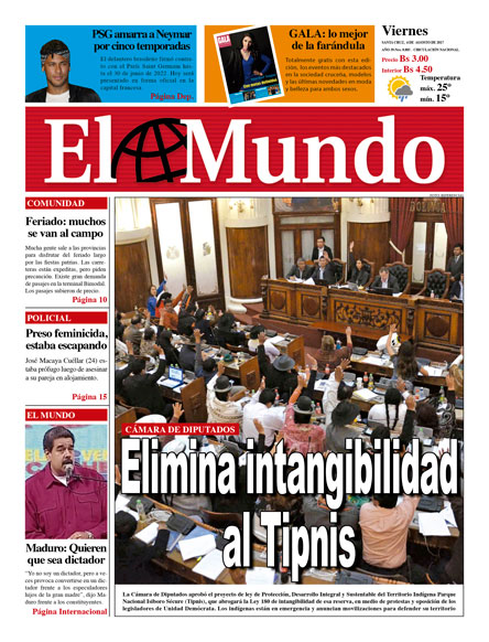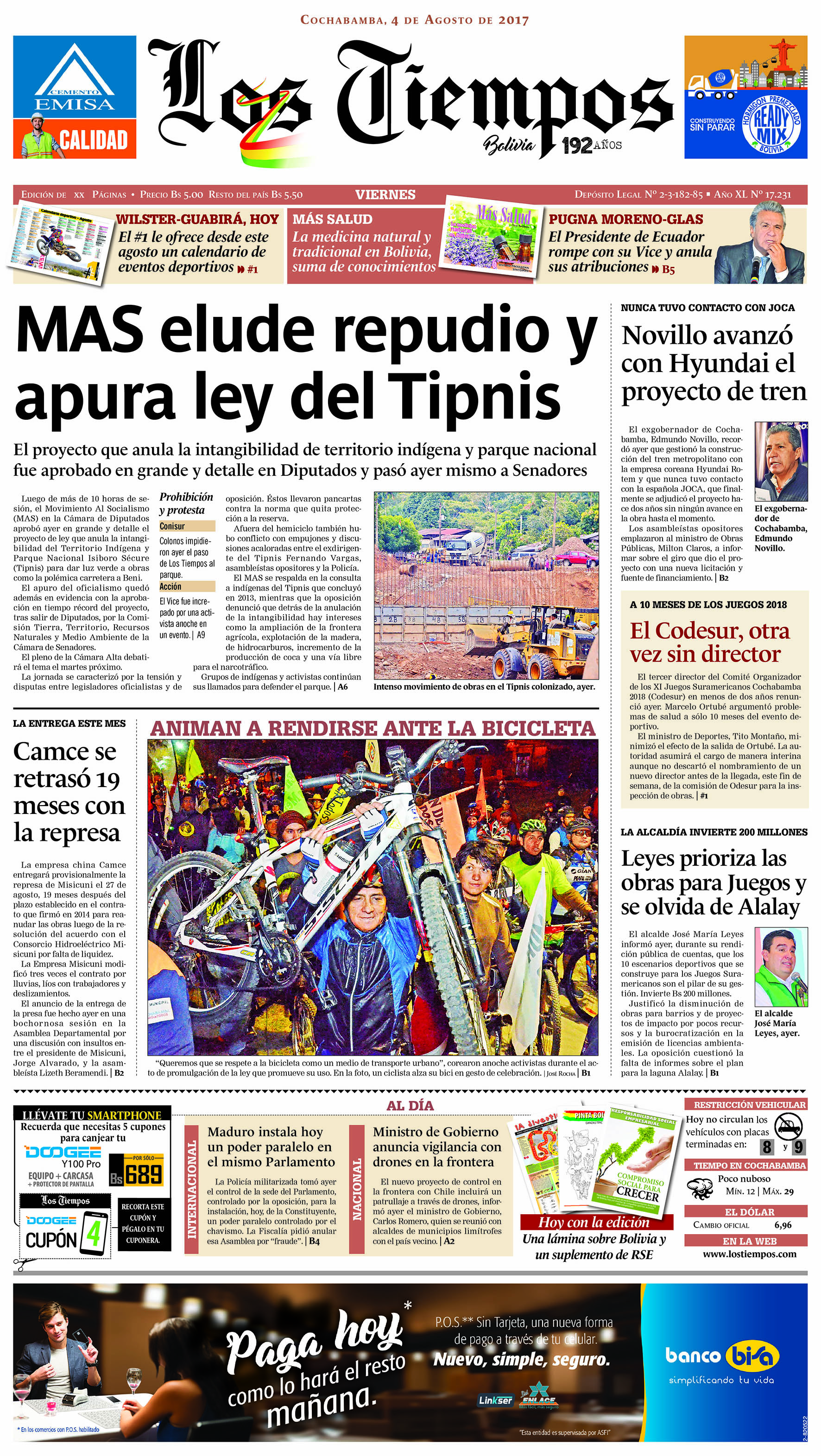 Portadas de periódicos de Bolivia del viernes 4 de agosto de 2017
