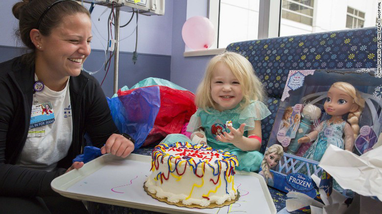 1 de 5 | Willow Stine fue diagnosticada con leucemia el pasado viernes. Apenas dos días después cumplió 3 años. La mayor parte de su familia, incluyendo a su hermana y papá, no pudo llegar al hospital para celebrarlo, debido al huracán Irma. Pero Kelly Boyd, un especialista en vida infantil, y otras personas del hospital donde se encuentra le hicieron una fiesta de cumpleaños, con pastel incluido y todo.