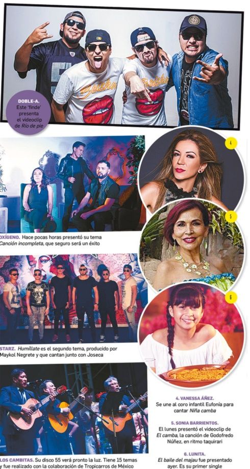 Camila, Daniela Barroso, Daphne Monroy, Doble-A, Lunita, Oxígeno, Randy, Sonia Barrientos, Starz, Vania Taborga, Vanessa Áñez, Los Cambitas, AJ & Diego y Big Latino feat. Guísela Santa Cruz son algunos de nuestros artistas que hoy te presentan sus canciones.