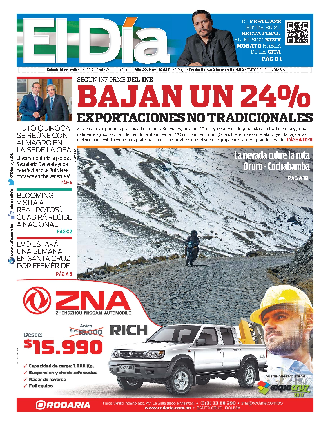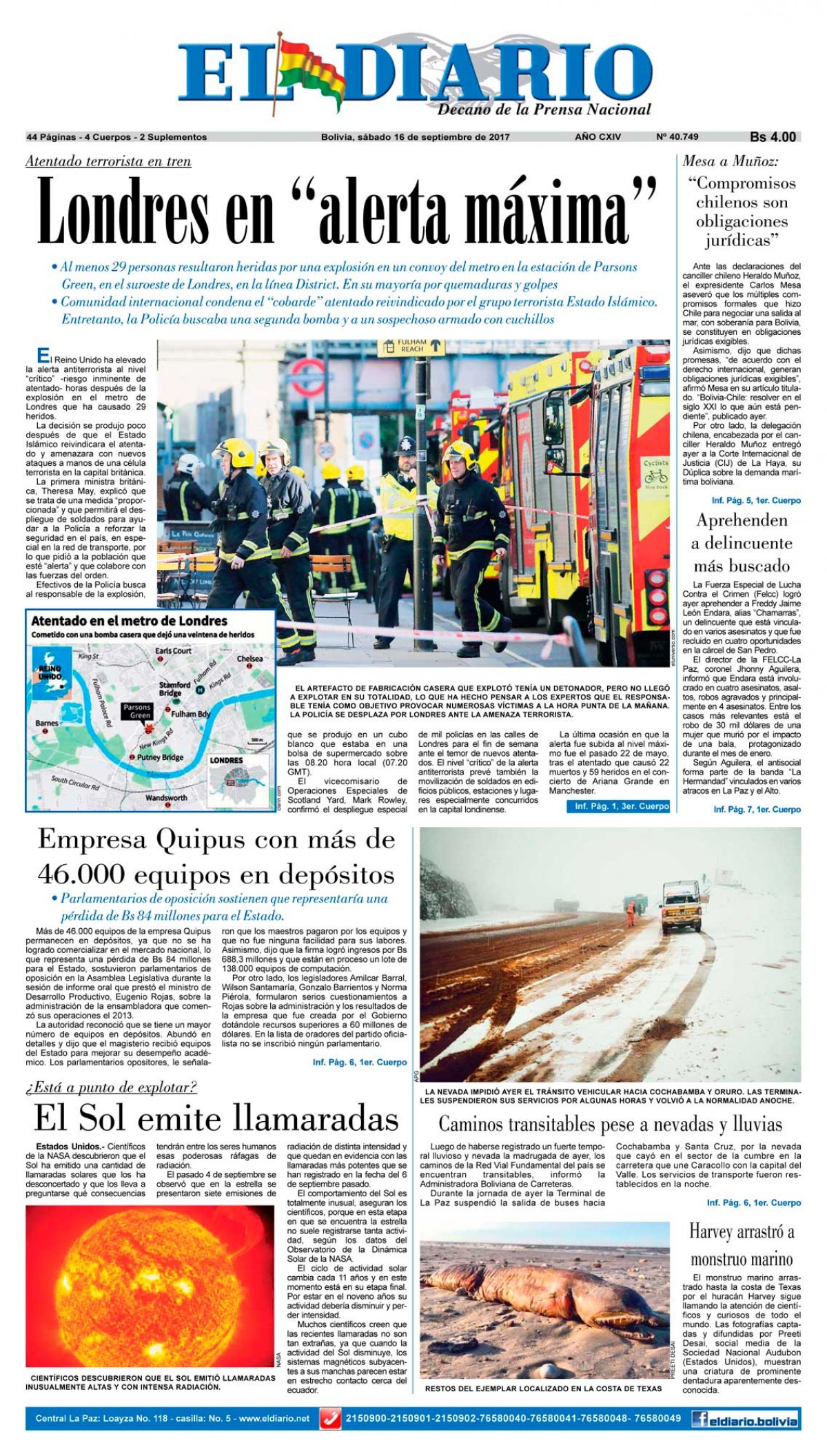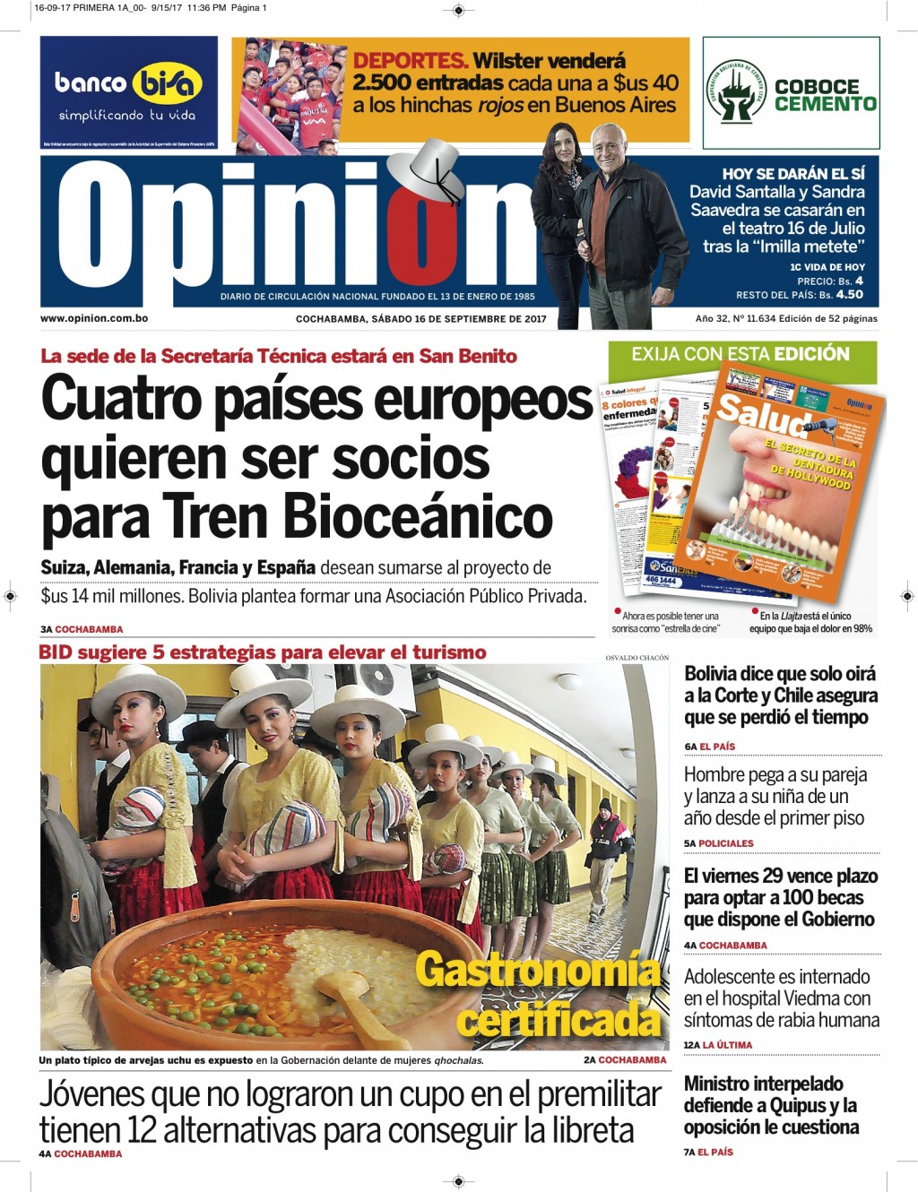 Portadas de periódicos de Bolivia del sábado 16 de septiembre de 2017Categorías MonitoreoEtiquetas , Portadas de periódicos 16/09/2017 El Deber – Los Tiempos – El Día – La Razón – Cambio – El Diario – Página Siete – Opinión