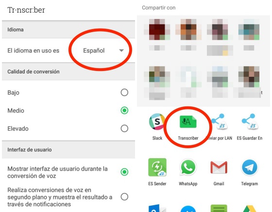 ¿De verdad falla tanto con el andaluz? ¿Hasta qué punto es exacta la transcripción? Hemos puesto a prueba la aplicación con diferentes mensajes: desde un audio común, que podría mandarte cualquiera de tus amigos, a un chiste de Chiquito de la Calzada.Antes de empezar, ¿cómo funciona?Al entrar en la aplicación, de descarga gratuita, aparece un menú en el que escoger el idioma en el que te llegan los mensajes. Una vez seleccionado (español en nuestro caso), ya no es necesario entrar más en la app. Cuando llegue un audio, hay que mantenerlo pulsado, seleccionar la opción de «compartir» y apretar en el logo de Transcriber for WhatsApp.