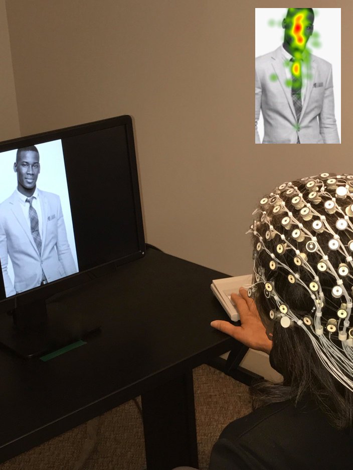 En un experimento de la Dra. Cacioppo y de su equipo, los participantes usan capuchas con sensores para electroencefalogramas mientras ven diferentes imágenes y se estudian sus movimientos oculares con un sistema infrarrojo.CreditStephanie Cacioppo