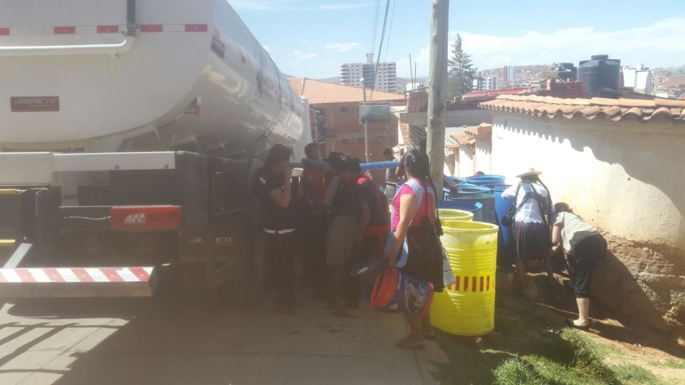 La crisis del agua comienza a sentirse en Sucre, sobre todo en los barrios periféricos donde en los últimos días hay largas filas de gente con recipientes para abastecerse del líquido elemento a través de cisternas que no abastecen a todos; el Comité del agua sigue analizando la declaratoria de emergencia y las labores educativas continuarán dos semanas más pese a la escasez de agua en los establecimientos educativos y en los domicilios.