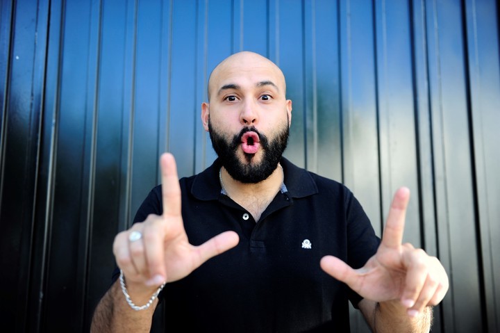 Clonador serial. Muzzio, de 34 años, puede «ser» Lionel Messi y al instante, Caruso Lombardi. (Foto: Juano Tesone).