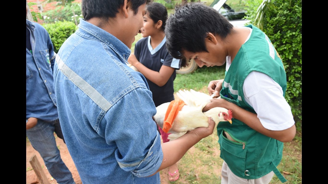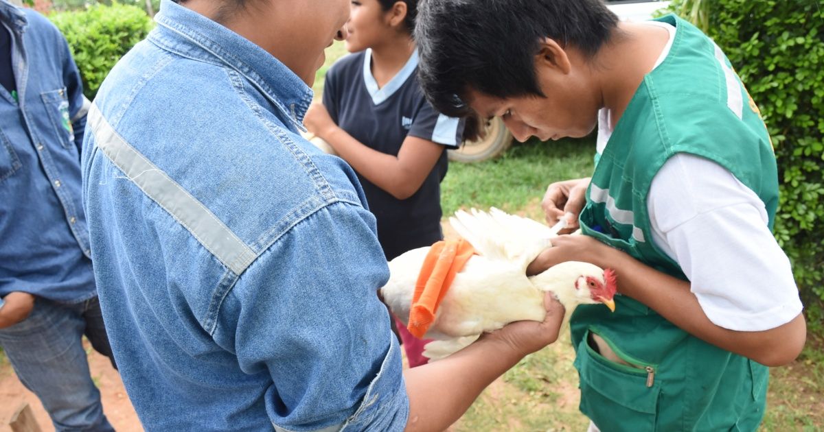 Estudiantes de la Colonia Piraí, funcionarios del Senasag y personal del municipio de La Guardia; procedieron a la vacunación, vía alimento, a más de 5.000 gallinas criollas y patos con el afán de inmunizarlas de enfermedades.