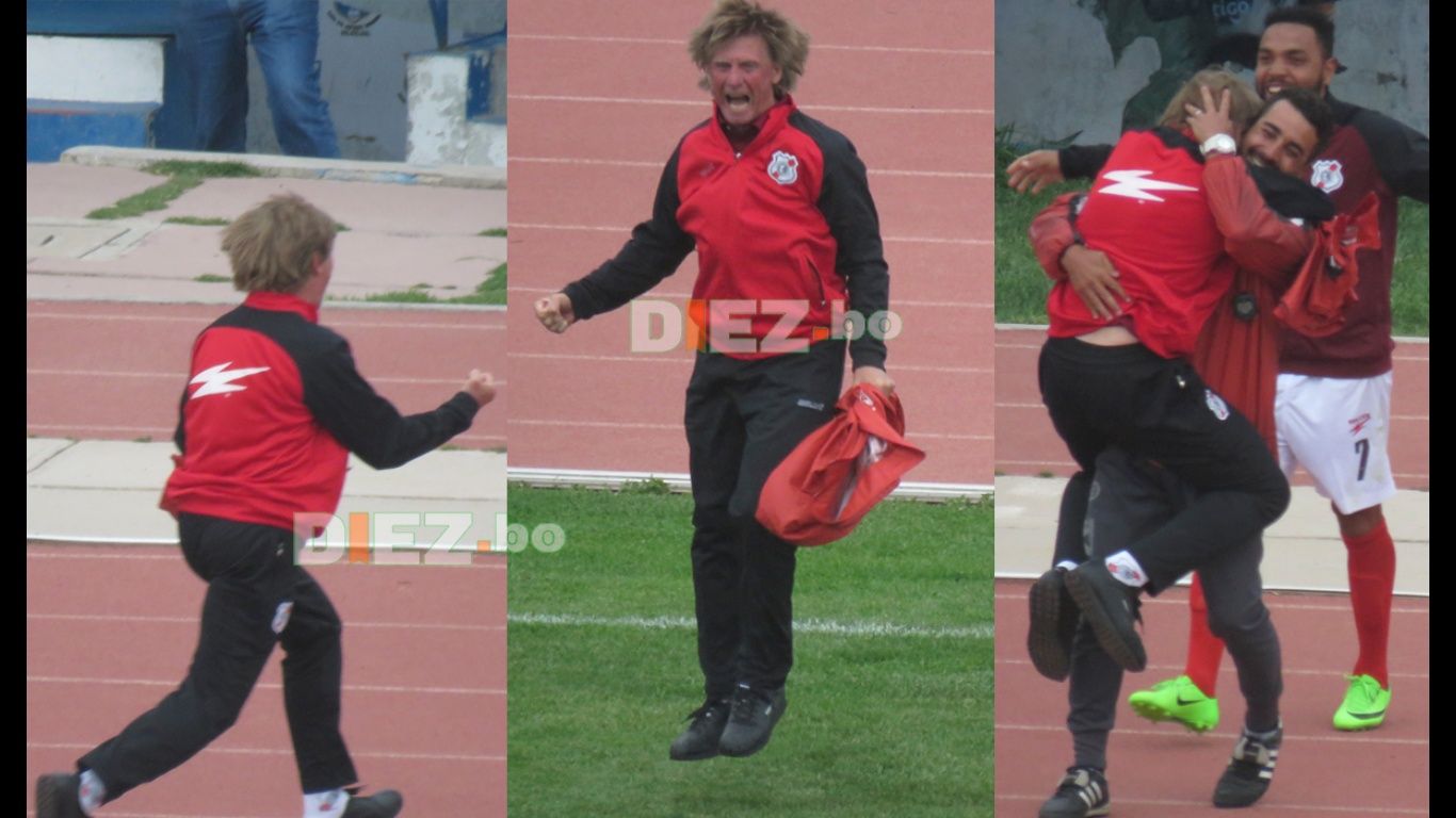 La felicidad es evidente en el rostro del técnico ibérico de Nacional Potosí, Ángel Pérez García, tras lograr el triunfo de visitante ante San José, en el estadio Jesús Bermúdez, catalogado por su persona, como el más complicado de la serie B.