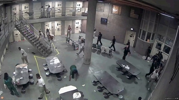 La lucha grupal quedó registrada gracias a las cámaras de seguridad del recinto en el cual se hallaban los delincuentes, alrededor de las 9.30 horas. Luego de dos minutos de refriega, los guardia cárceles irrumpieron en el lugar poniendo orden.