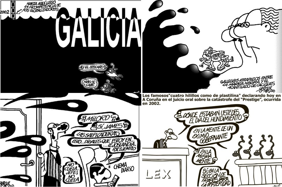 Forges reflejó en sus viñetas la indignación social por la gestión de la catástrofe ambiental provocada tras el hundimiento del petrolero ‘Prestige’ frente a las costas gallegas.