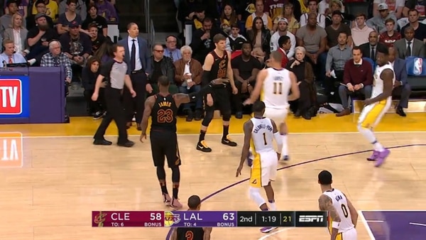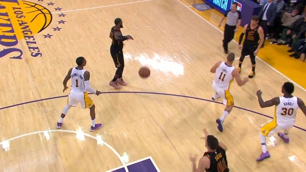 La asistencia sin mirar de James a Ante Zizic para que encestara fue de ensueño y provocó el engaño a todo el equipo rival. Sin mirar a quien estaba cediéndole la bola, el gran King James se convirtió con esa sola jugada en el más importante del match.