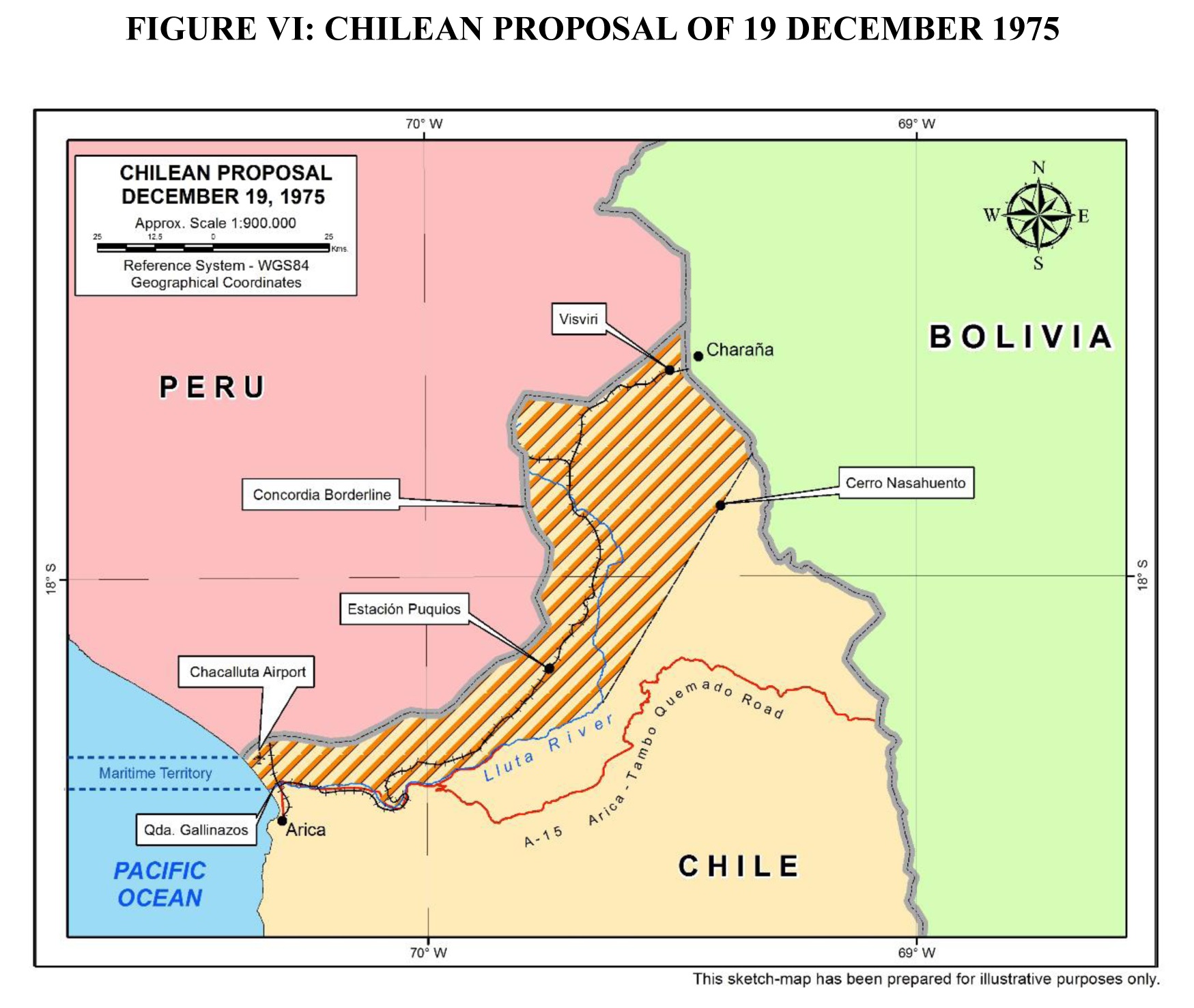 - Propuesta de Chile en el Abrazo de Charaña de 1975. Fuente: Memoria de Bolivia en el juicio de la CIJ.