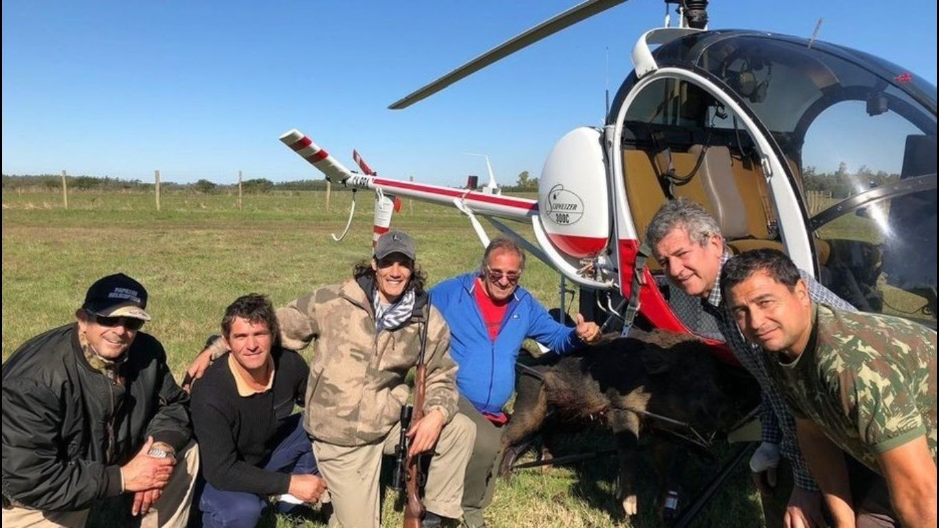 Resulta que el pasado domingo el delantero del PSG rentó un helicóptero junto a algunos amigos en la provincia de Salto, su ciudad natal. Hasta allí todo bien, pero Cavani y compañía no solo se fueron al campo para disfrutar de la naturaleza, sino que también se fueron de caza. La presa capturada y asesinada fue un jabalí.