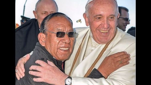 Toribio Ticona con el papa Francisco al que agradeció por el nombramiento de Cardenal. Foto: Internet