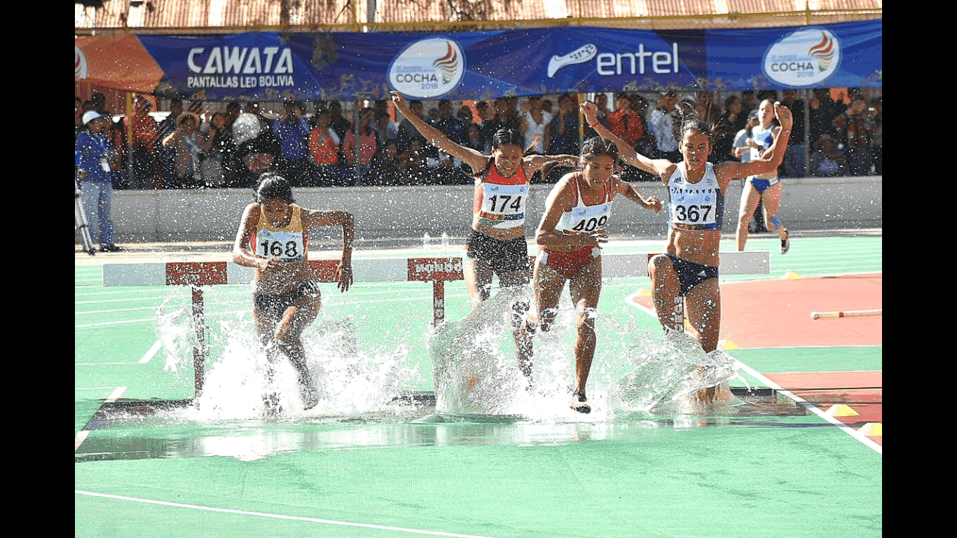 Las atletas Edith Mamani y Jhoselyn Camargo terminaron en el segundo y tercer puesto, respectivamente, de la prueba 3.000 metros con obstáculos. En varones, Limber Apaza logró el tercer puesto.