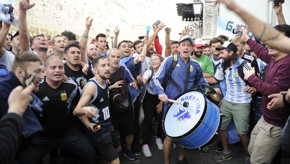 Hinchas argentinos esperan el partido de la Selección en la Plaza Roja. Foto: Juano Tesone.