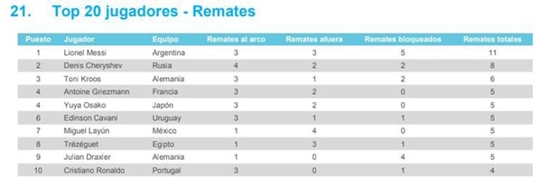 Jugadores que más patearon al arco: