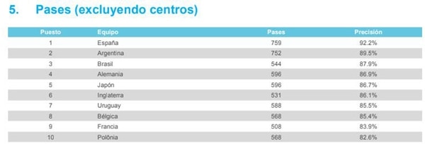 Equipo que más pases hizo: España
