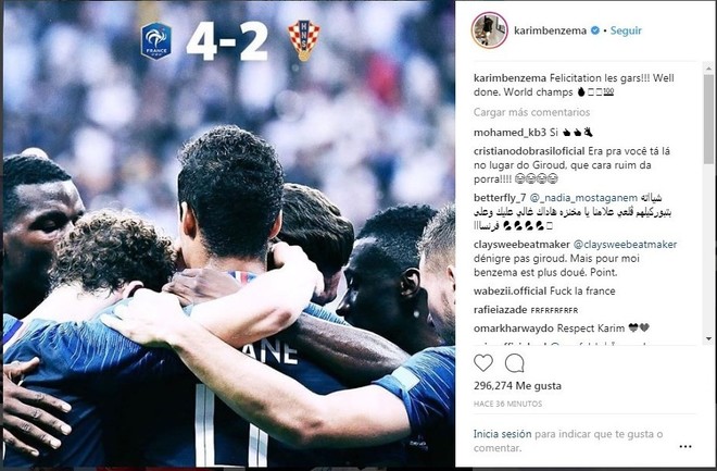 El delantero del Real Madrid, marginado por Deschamps de la selección por escándalos extrafutbolísticos, entre otras cosas, felicitó a sus compañeros a través de las redes sociales. ¡Mirá!