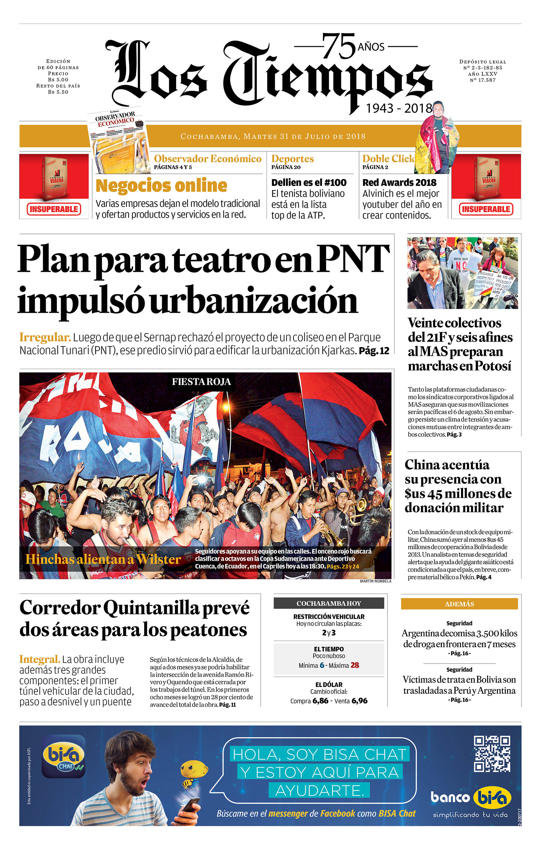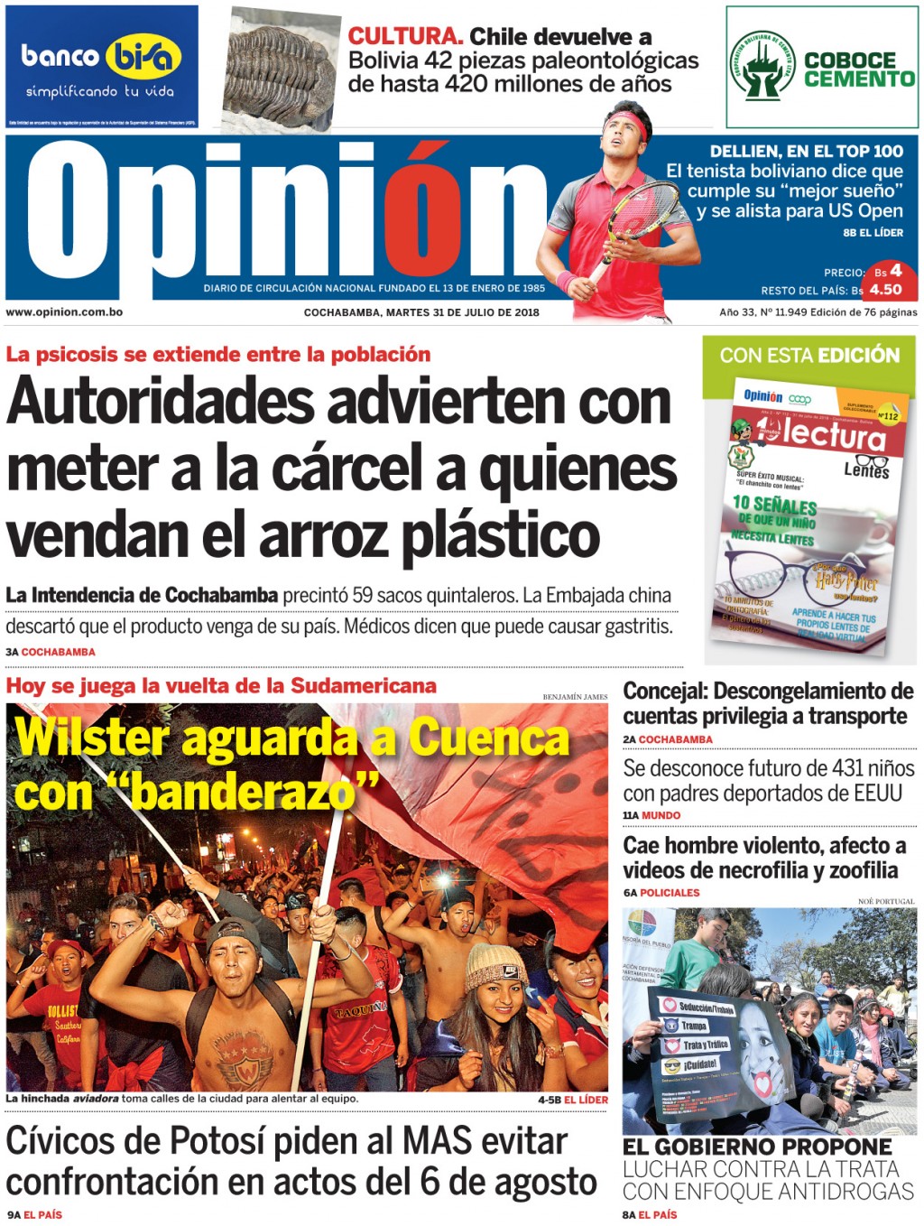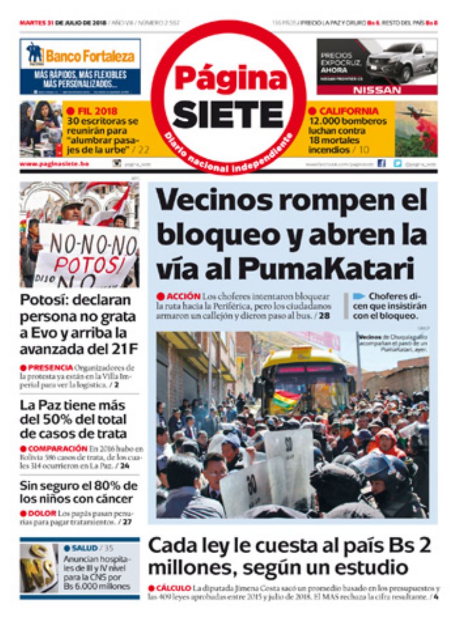 Portadas de periódicos de Bolivia del martes 31 de julio de 2018Categorías MonitoreoEtiquetas , Portadas de periódicos 31/07/2018 El Deber – Los Tiempos – El Día – La Razón – Cambio – El Diario – Página Siete – Opinión
