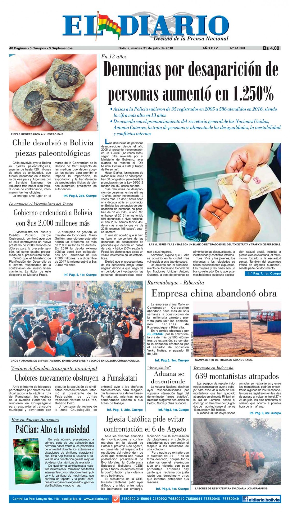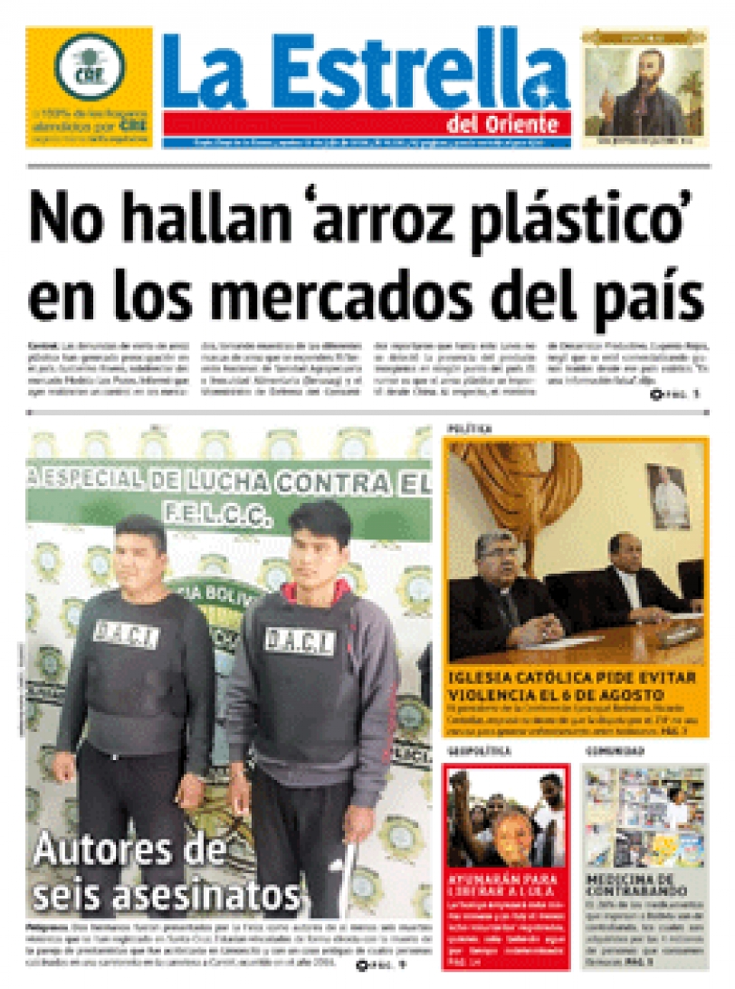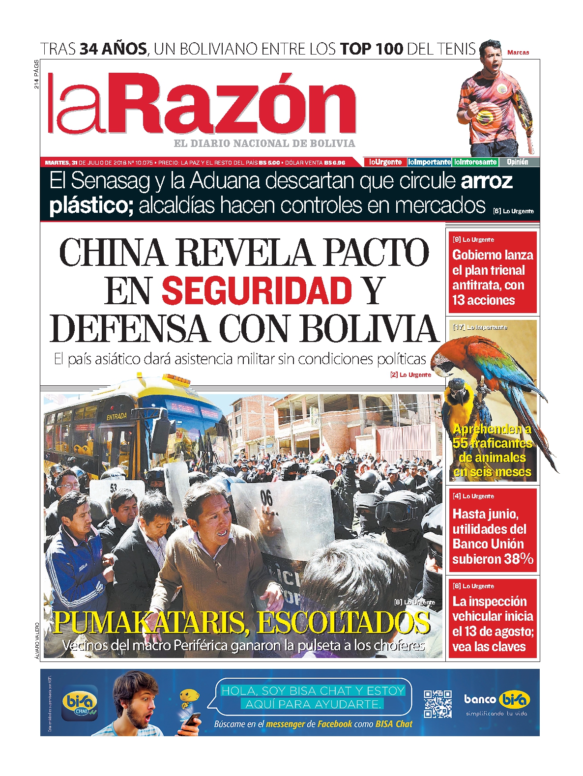 Portadas de periódicos de Bolivia del martes 31 de julio de 2018Categorías MonitoreoEtiquetas , Portadas de periódicos 31/07/2018 El Deber – Los Tiempos – El Día – La Razón – Cambio – El Diario – Página Siete – Opinión