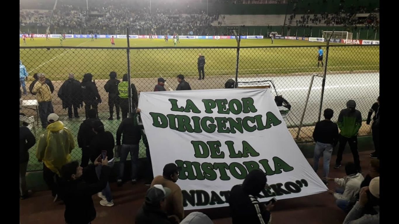 Algunos calificaron a los directivos como los peores de la historia. La protesta se hizo sentir con mayor fuerza tras consumarse el empate ante Wilstermann (1-1). Los hinchas incluso arremetieron en contra de su jugador estrella Pablo Zeballos, que se animó a encarar a sus detractores para pedir paciencia.